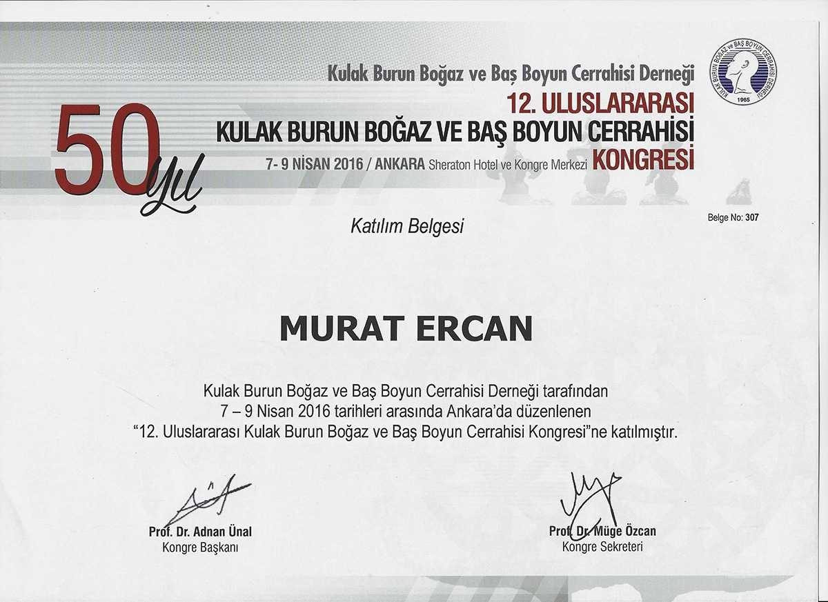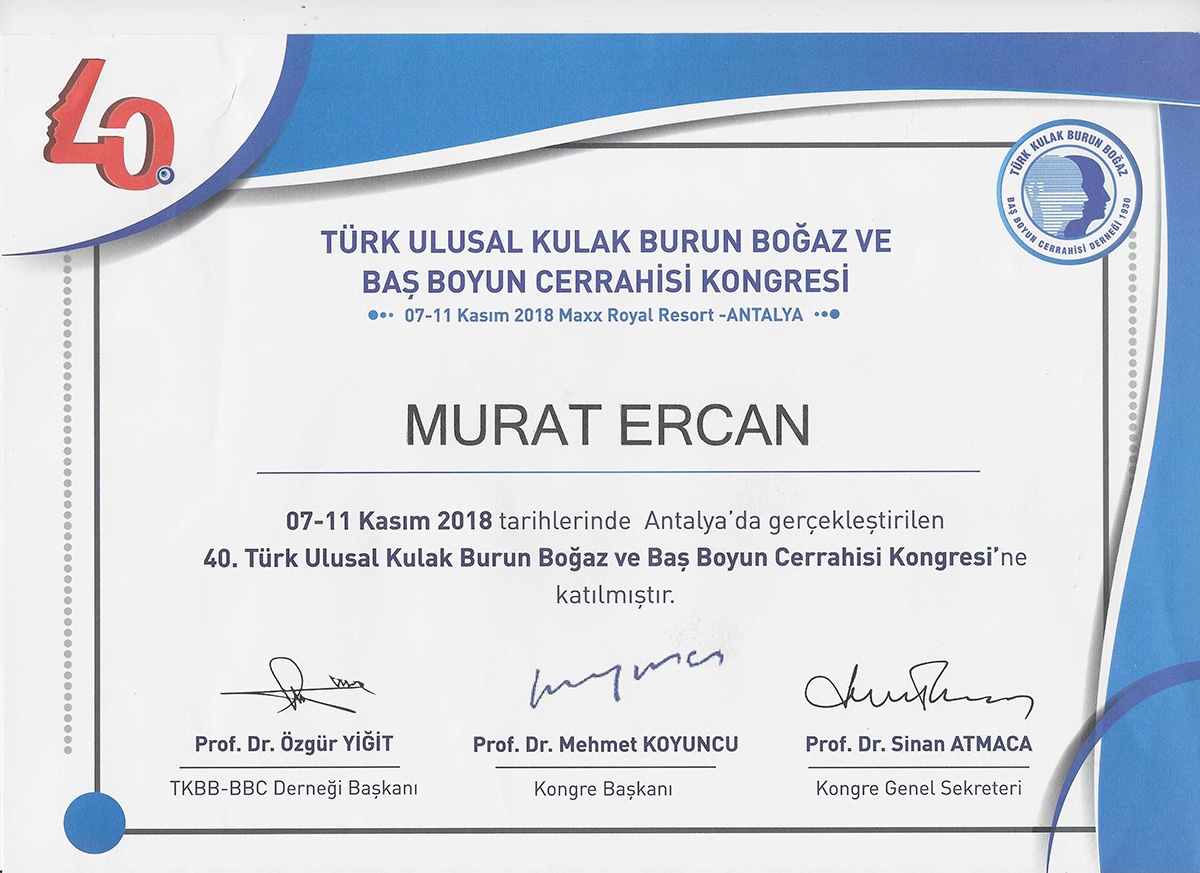 Op. Dr. Murat Ercan graduated from Hacettepe University Faculty of Medicine in 2013. In 2018, he completed his residency in Otorhinolaryngology at Eskisehir Osmangazi University. With a special interest in functional and aesthetic rhinoplasty, he has advanced in this field by attending courses and congresses at home and abroad.